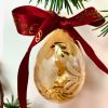 We hand paint this lovely egg shaped bauble then delicately etch the individual floral pattern into the glass which allows the light to shine right through the cut out sections. Just so pretty.