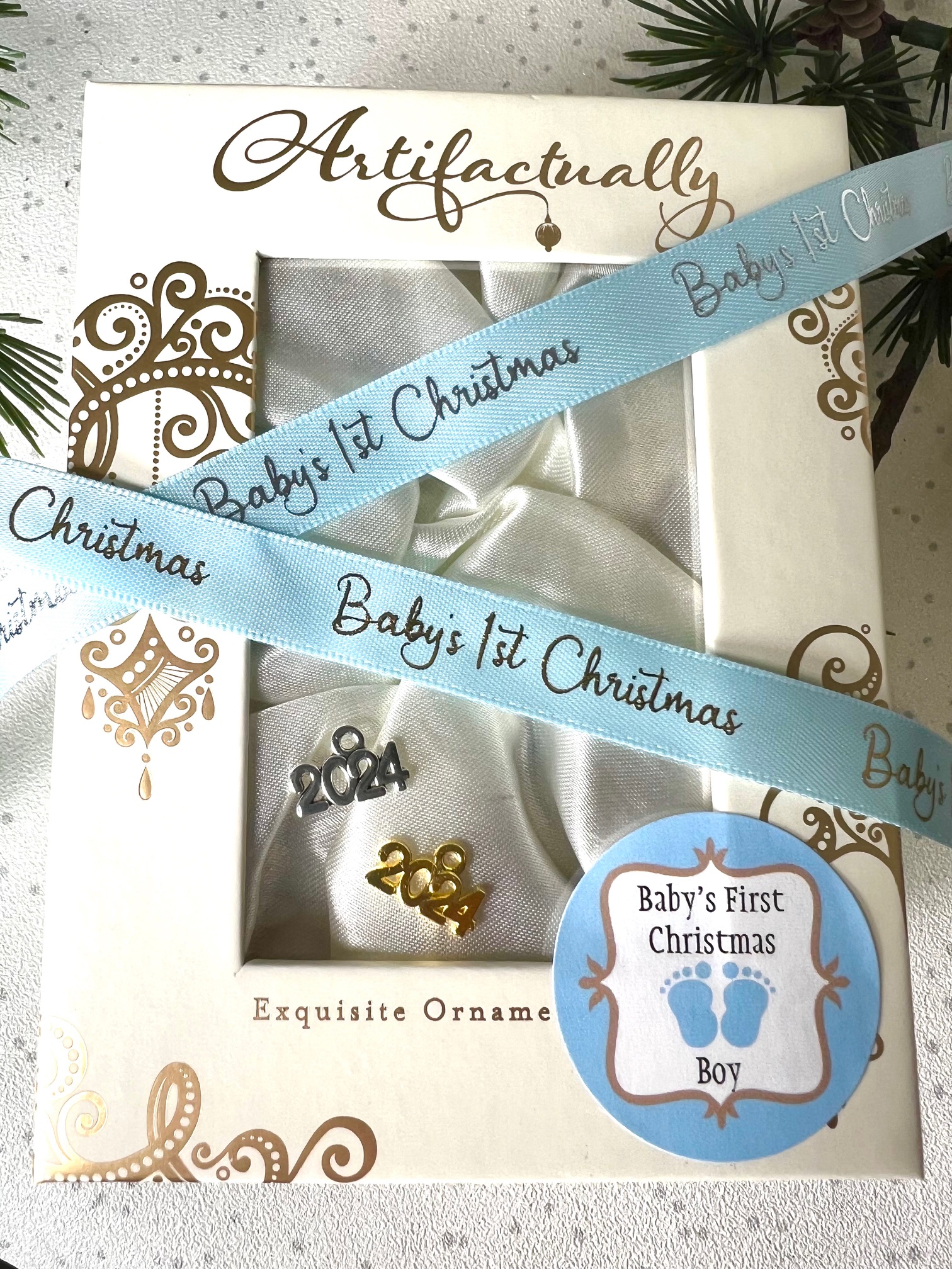 Baby’s 2025 Victorian Etch Ornament (S) ~ Blue/Silver