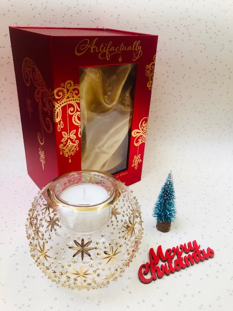 Everyone loves a candle and these are really something special. Covered in a multitude of individually applied raised glass dots and hand etched silver stars. They will sparkle even more through the glass when lit. Comes complete with wax candle…..a perfect gift individually or in a pair. Size L (9cm)