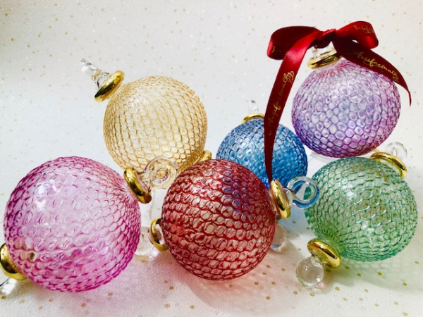 A delicate mesh of glass gives a magical effect to this special bauble. Just a wonderful texture to feel and of course glorious with the twinkling lights of the Christmas tree shining through.