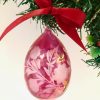 We hand paint this lovely egg shaped bauble then delicately etch the individual floral pattern into the glass which allows the light to shine right through the cut out sections. Just so pretty…….