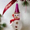 A twist on our classic hand made Frosty the Snowman ornament….we’ve added a jaunty scarf to keep him warm this winter. A whimsical present and/or cheerful addition to the Christmas tree.