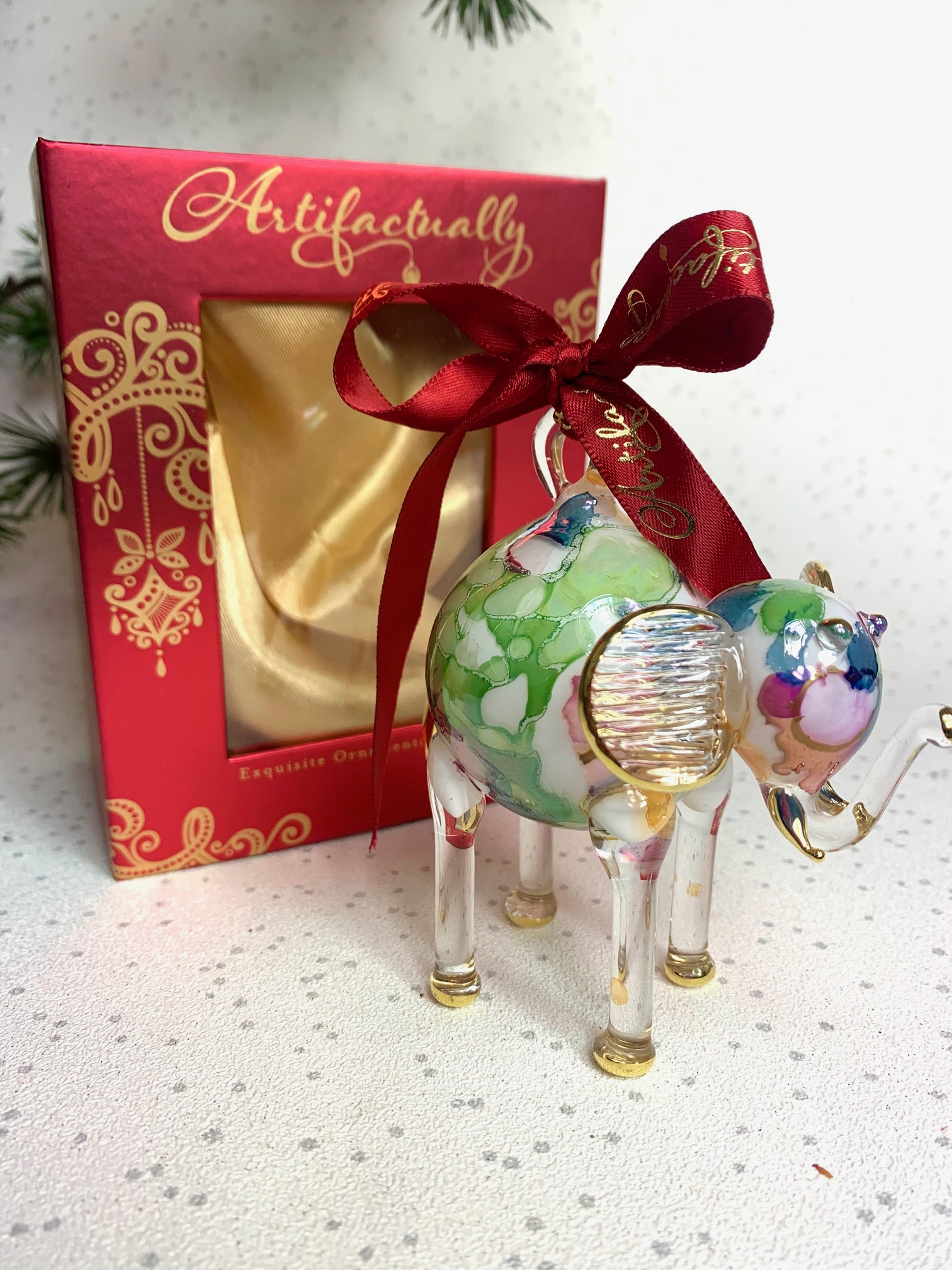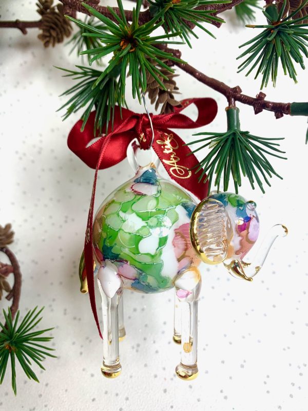 Our most loved Elephant Bauble comes with a twist this year. Individually hand painted on the inside of the glass using an old fashioned marbling paint technique. Perfectly unique for all the elephant collectors out there. Size M (8cm)