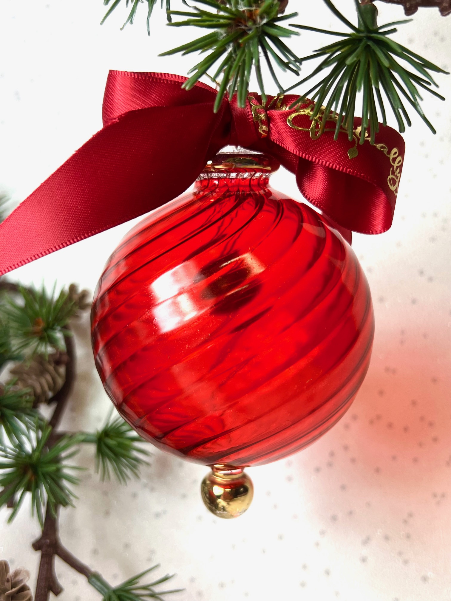 A classic Christmas Bauble with a matt hand painted finish.