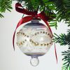 Such a pretty ornament – with a delicate garland of gold raised glass foliage wrapped around the entire bauble. We’ve also hand painted a splash of colour at the top and bottom. So gorgeous on the tree with the Christmas lights shining through.