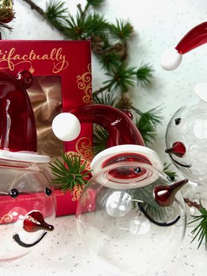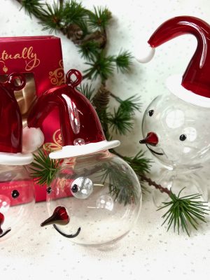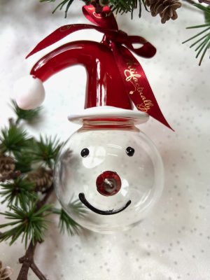 This cute bauble of Santa’s head comes with a jolly white glittery hat and cheery red nose. What a fun ornament for your tree or a lovely gift. Santa’s head bauble pairs well with the new Snowman’s head bauble in black. Size L (7cm)