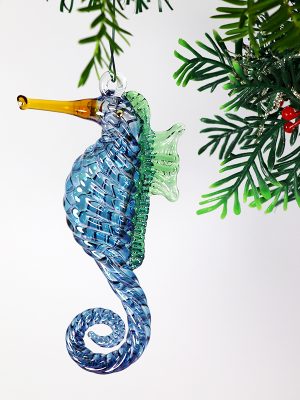 A must for all Seahorse lovers, with fine details, twisted glass and exquisite Swarovski crustal eyes. Size M (4.5cm x 11cm)