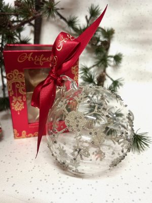 A handblown glass ornament encrusted in miniature seed pearls in snowflake designs. £39.95, 50% Off so £19.95 10cm