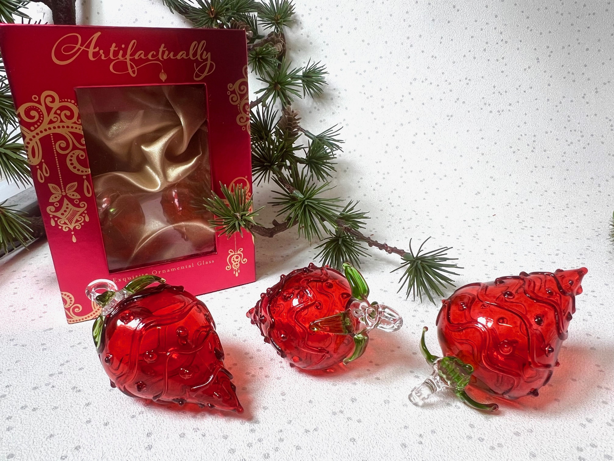 A splash of red for your Christmas Treeā¦..our sweet strawberry ornament has lovely green leaves and is painted a bright juicy red for some whimsey on your Christmas Tree. Size 8cm x 4cm
