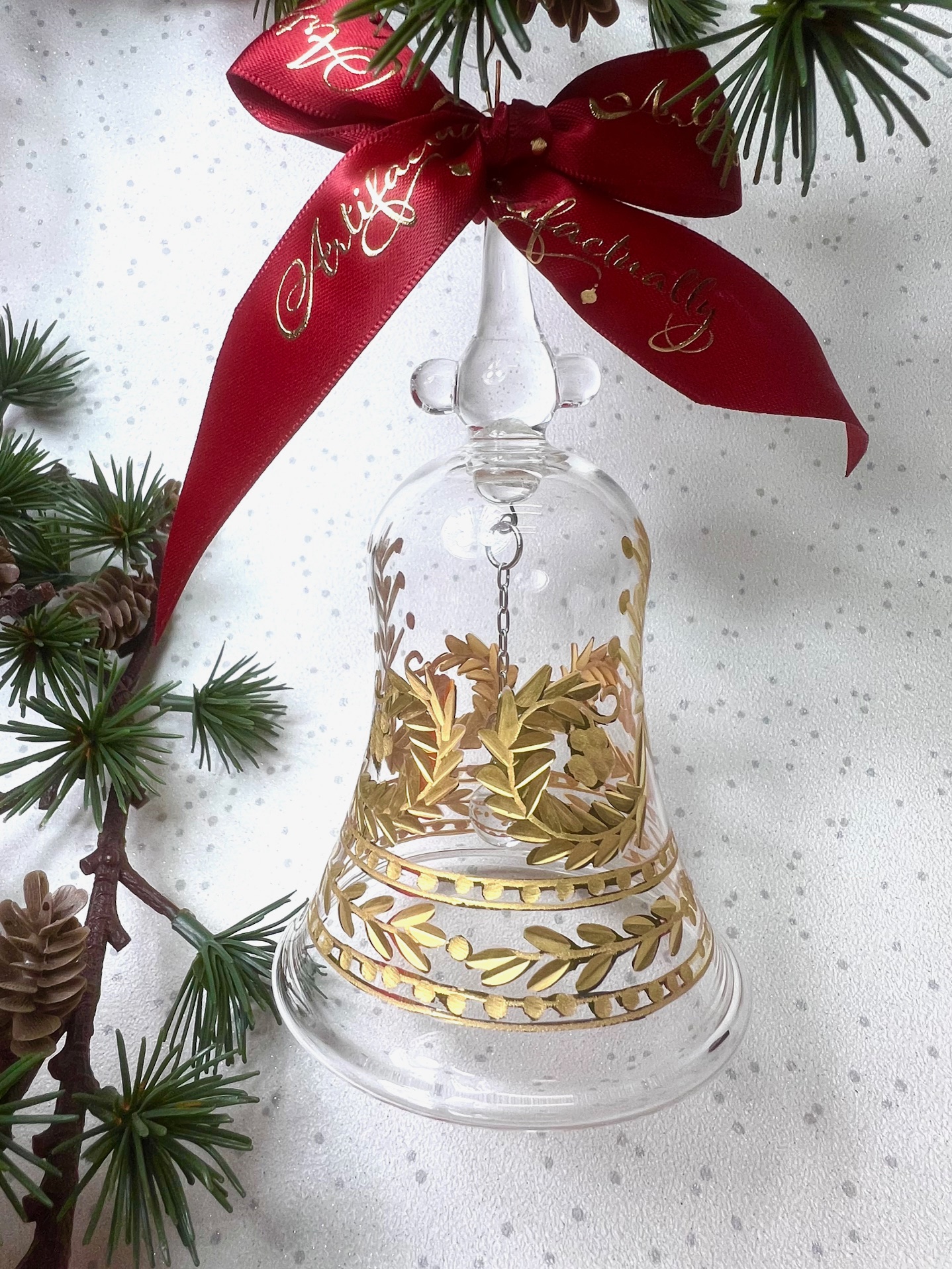 A GORGEOUS ornately etched ringing bell. With tiny a handmade glass ball & chain inside which gives a delightful chime. Hang from the Christmas Tree or sit next to the bed for a cup of tea on Christmas morning….