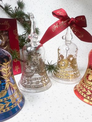 A GORGEOUS ornately etched ringing bell. With tiny a handmade glass ball & chain inside which gives a delightful chime. Hang from the Christmas Tree or sit next to the bed for a cup of tea on Christmas morning….