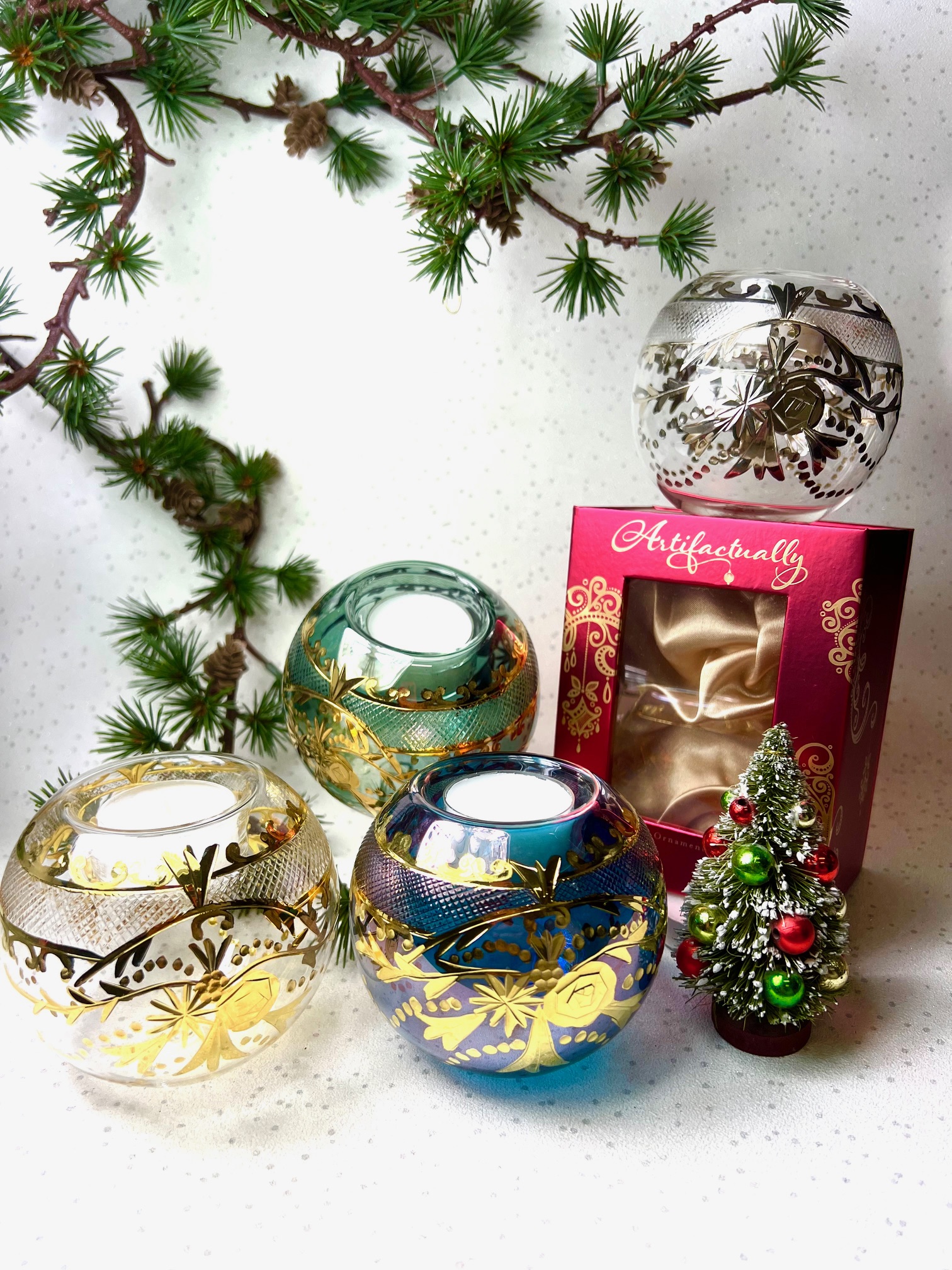 This gorgeous NEW tealight is so pretty on the Christmas table, perfect all year round or a magical Christmas gift in a big shiny red box. Covered in an intricate hand etched vintage rose design. Includes wax candle.