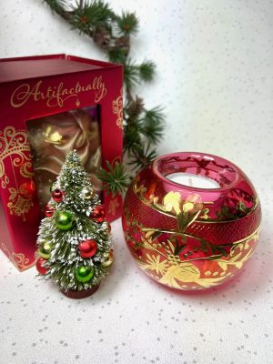This gorgeous NEW tealight is so pretty on the Christmas table, perfect all year round or a magical Christmas gift in a big shiny red box. Covered in an intricate hand etched vintage rose design. Includes wax candle.